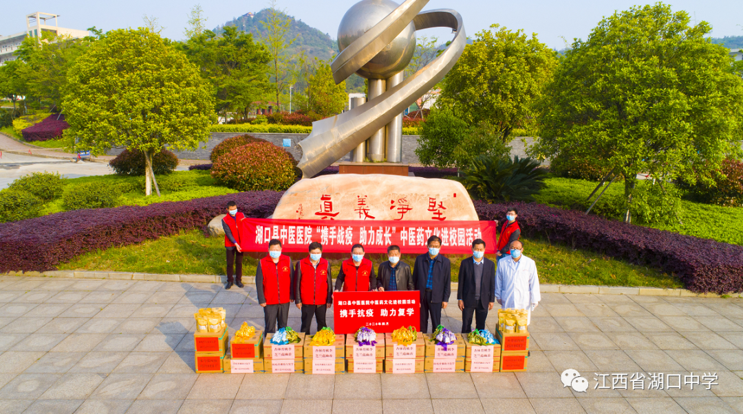 “本草祛疫病,药饮润园丁”。湖口县中医医院院长柯阳春率领医护人员为师生们专门制作了中药抗“疫”香囊和中药茶饮,助力学校复学。