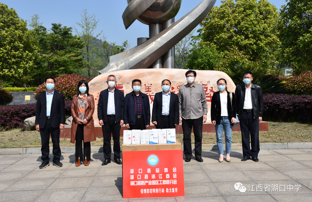 4月9日上午,为筑牢高三、初三学生复学复课安全屏障,切实做好师生安全防护工作,湖口县工商联组织县总商会、县浙江商会和县高新产业园区工商联分会共同开展向湖口中学献爱心活动。